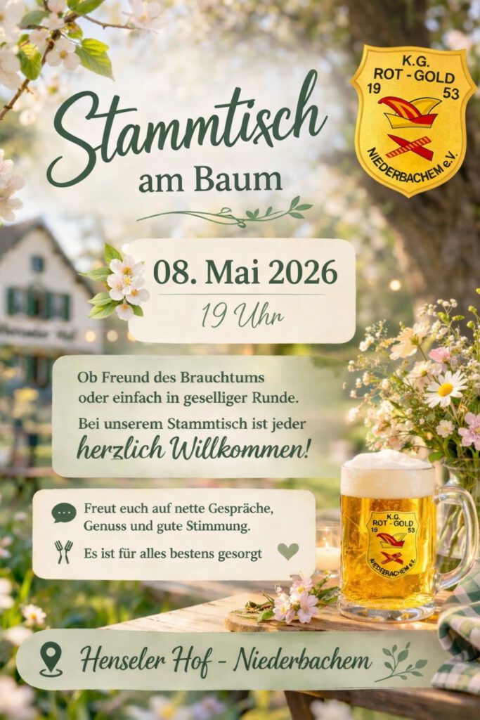 Die KG Rot Gold 1953 Niederbachem e.V. lädt alle Jecken ein ur feirlichen Sessionseröffnung am 22.11.2025.