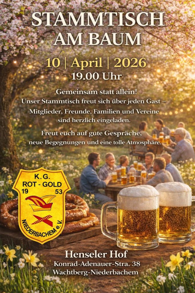 Jahreshauptversammlung am Dienstag, den 21. April 2026, um 19:30 Uhr im Dorfsaal „Henseler Hof“, Konrad-Adenauer-Str. 38 in 53343 Wachtberg-Niederbachem ein.